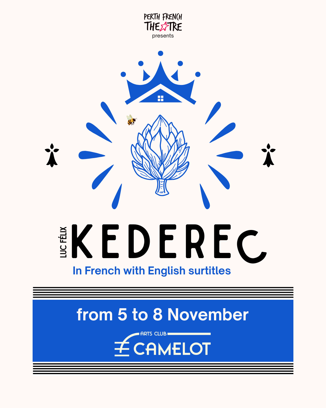 Perth French Theatre presents: KEDEREC, written by Luc FΓ©lix in French with English surtitles. From November 5 β 8, Camelot Arts Club invites you to experience a trip to Brittany, where village comedy collides with political satire.