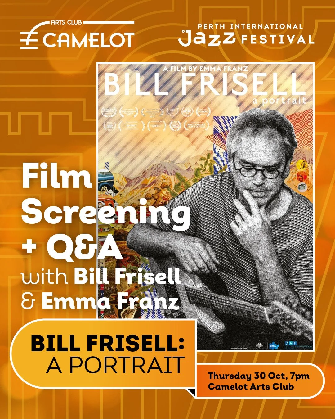 Perth International Jazz Festival is proud to announce a special one-night-only screening of the documentary ππͺππ ππ³πͺπ΄π¦ππ: π ππ°π³π΅π³π’πͺπ΅, followed by an exclusive Q&A with legendary guitarist Bill Frisell (USA) and award-winning filmmaker Emma Franz.