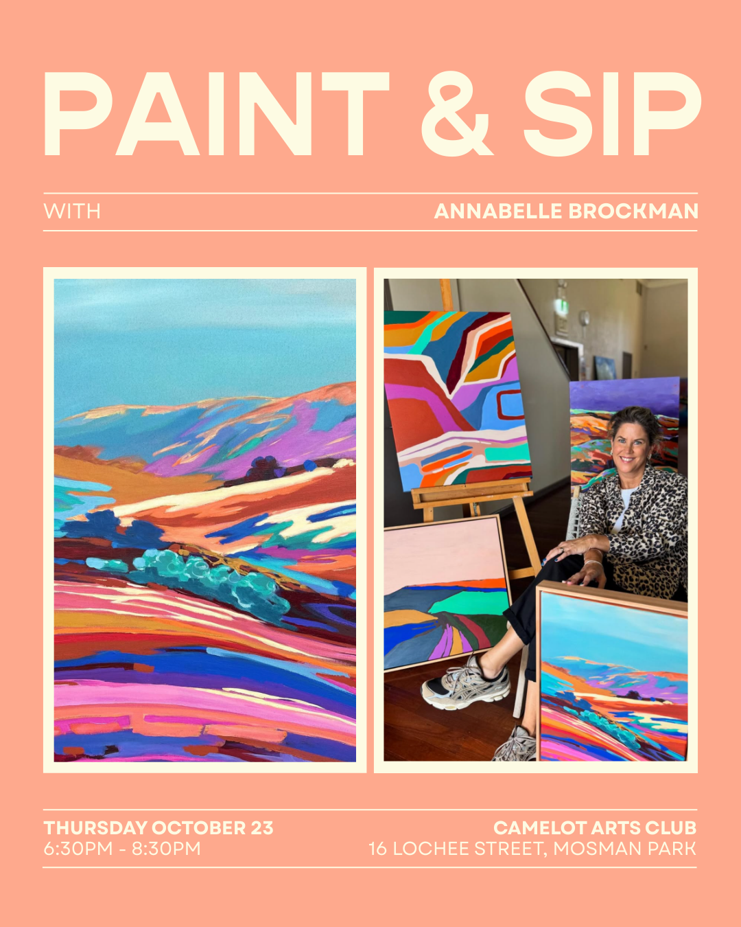 Unleash your inner artist at Camelot Arts Clubβs first-ever Paint & Sip. Whether youβre a total beginner or seasoned painter, this step-by-step guided session is all about unwinding, exploring your inner artist, and enjoying a sip (or two) of wine.