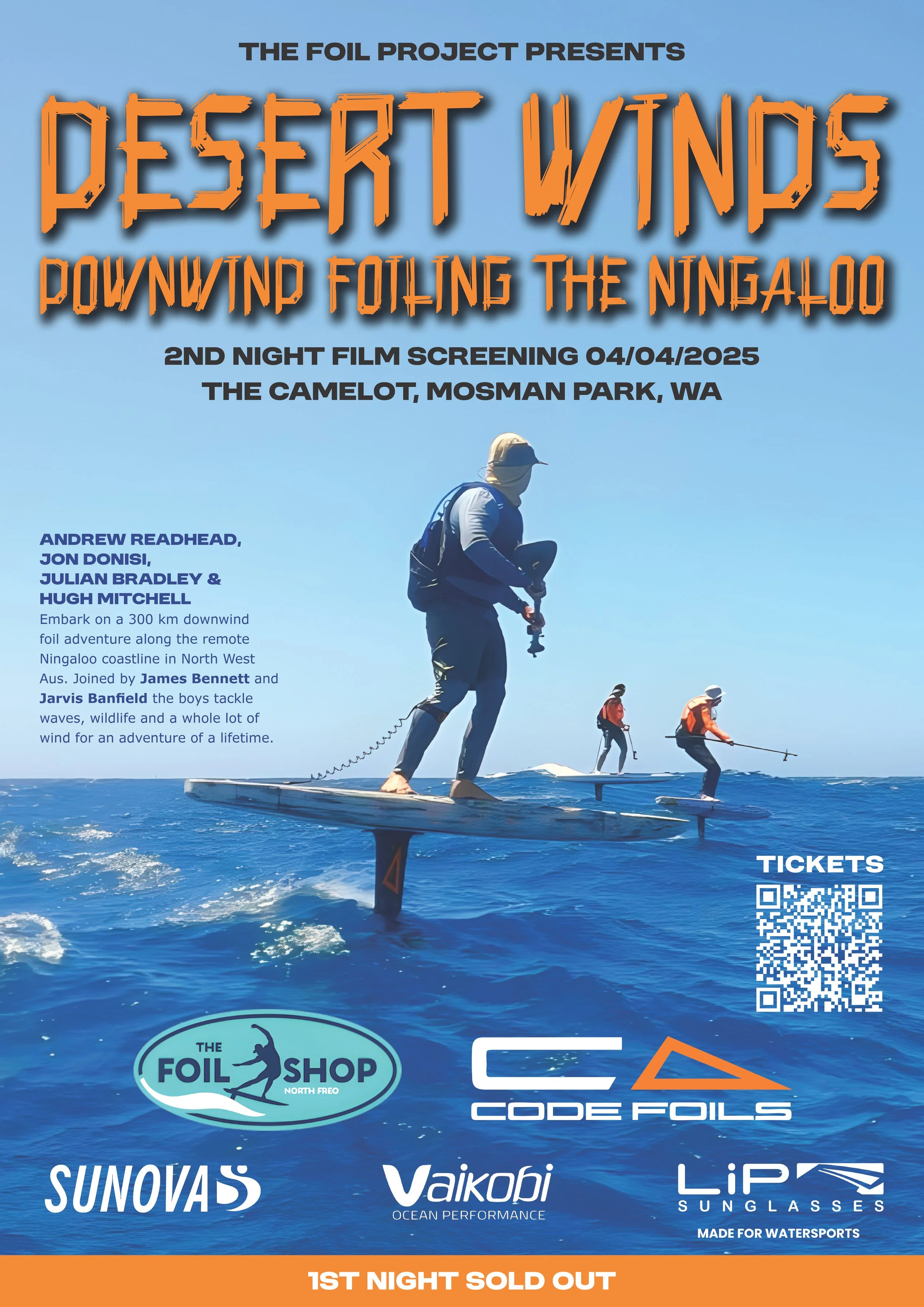 Foilers Andrew Readhead, Jon Donisi, Julian Bradley and Hugh Mitchell take on a downwind foil mission from Red Bluff to Mildura Wreck, covering over 300 km of a remote desert coastline in North Western Australia.